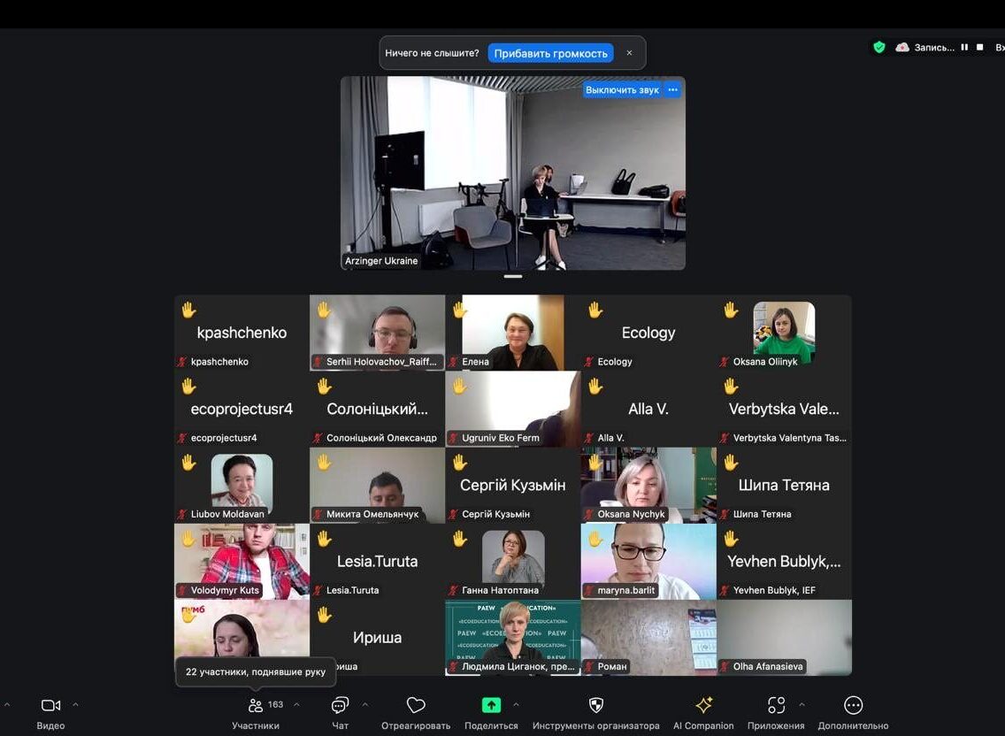 16 квітня у Києві в змішаному форматі Асоціація професіоналів довкілля PAEW у співпраці з ARZINGER, Всеукраїнською асоціацією ОТГ, Офісом сталих рішень, EVERLEGAL, Koshyk & Partners Law Firm та ін. провели Вебінар«ЕКОкомплайєнс для МСП та екологічна документація агробізнесу 2025»