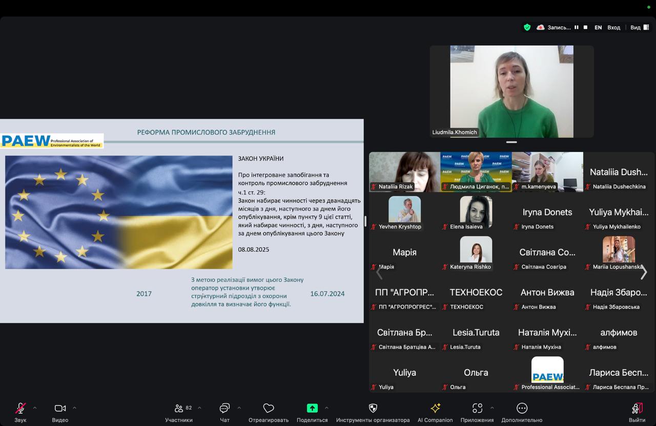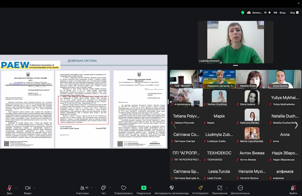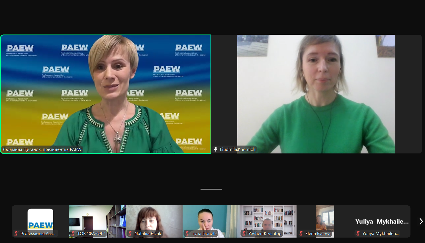 На вебінарі Людмила ХОМІЧ(віцепрезидентка PAEW) та Юлія МИХАЙЛЕНКО (юрист з довкіллєвих питань) розʼяснили учасникам: