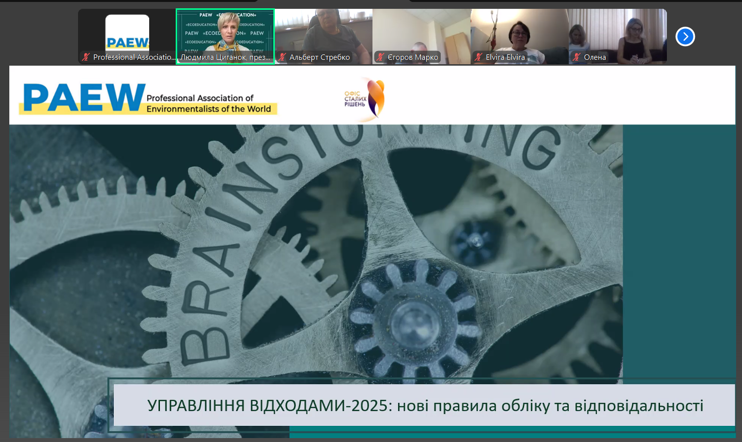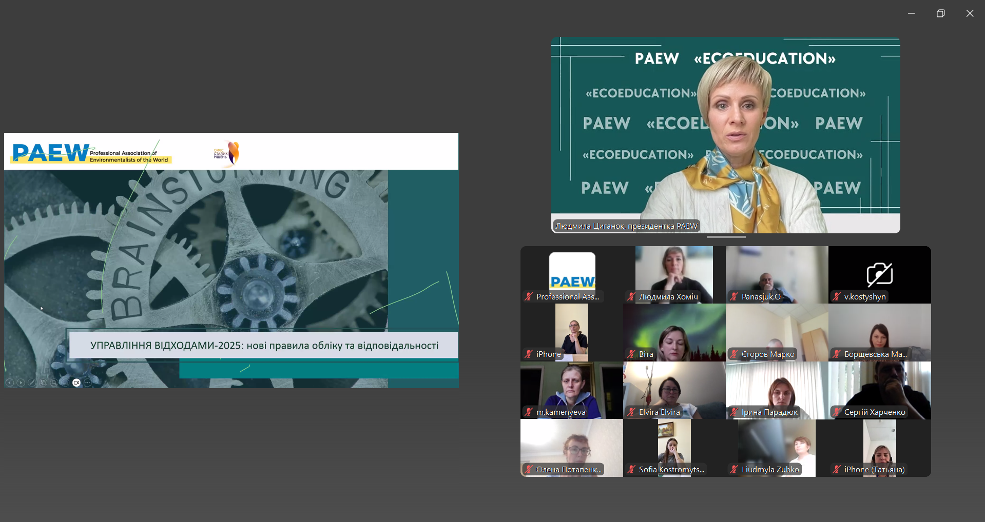 📢 26 червня успішно провели курс підвищення кваліфікації «Управління відходами-2025: нові правила обліку та відповідальності для підприємств» організований Офісом сталих рішень спільно з Асоціацією професіоналів довкілля PAEW!