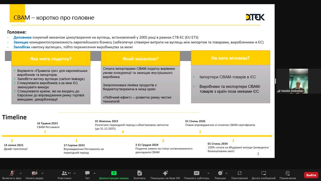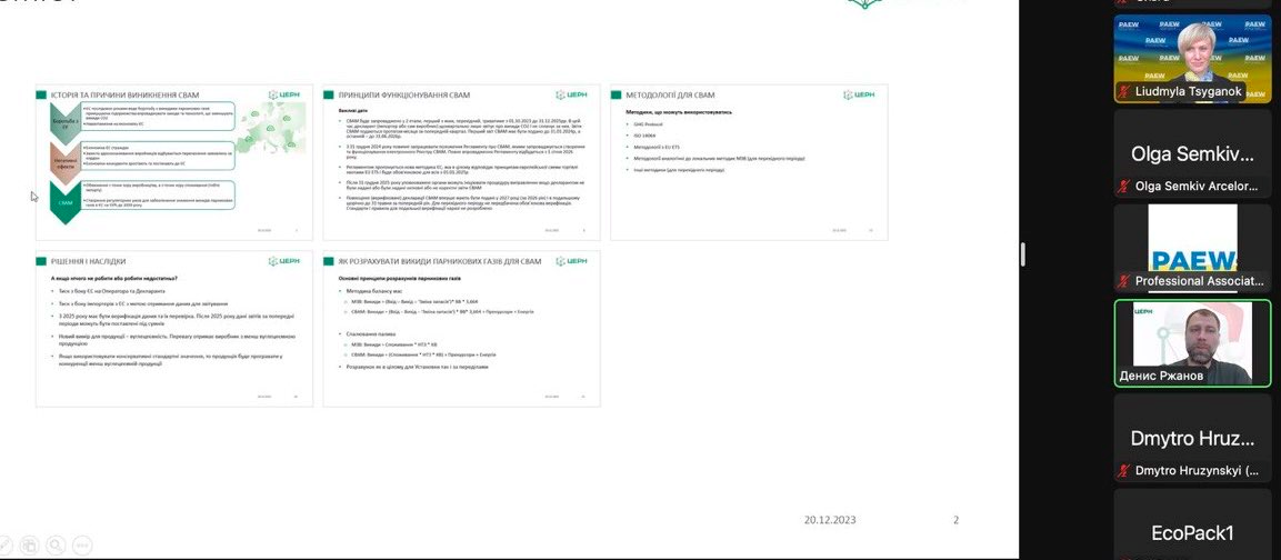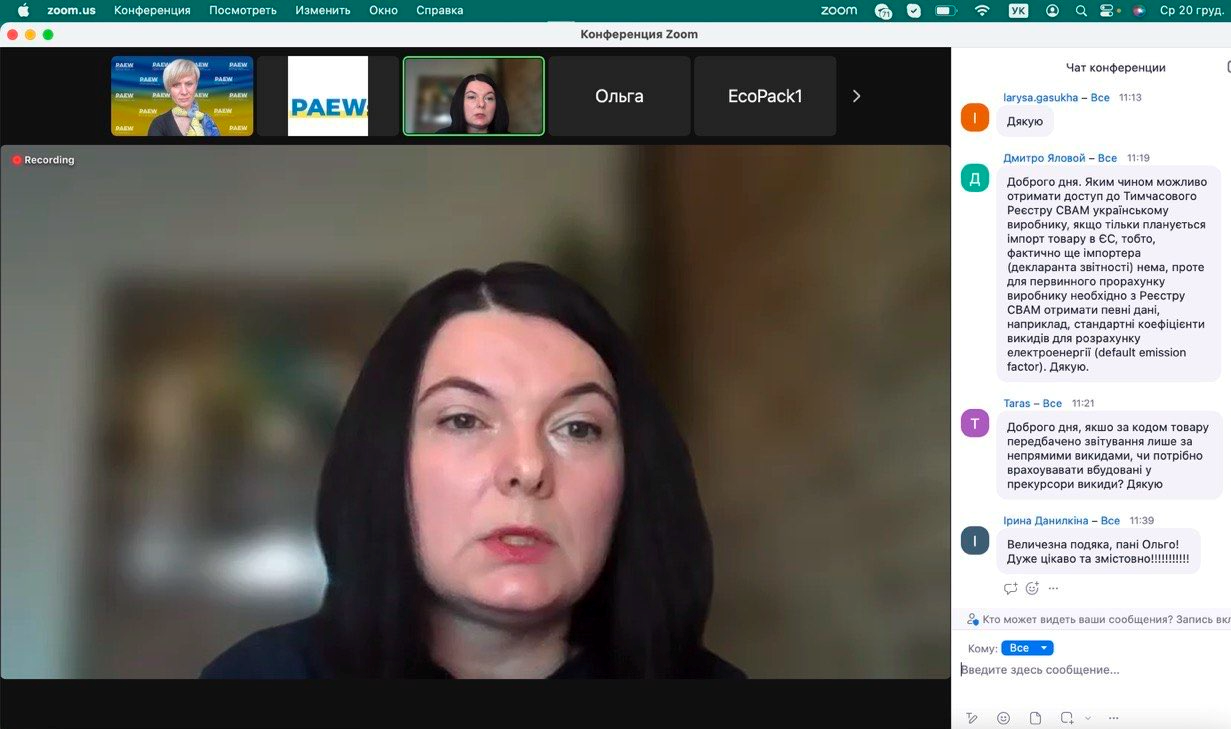 Сьогодні Асоціація професіоналів довкілля PAEW провела спеціально для своїх зацікавлених учасників спецтренінг, щоб розʼяснити перспективи та порядок дій для українських підприємств в умовах вуглецевого коригування ЄС, розповісти про дві форми одного механізму – перехідну та повноформатну