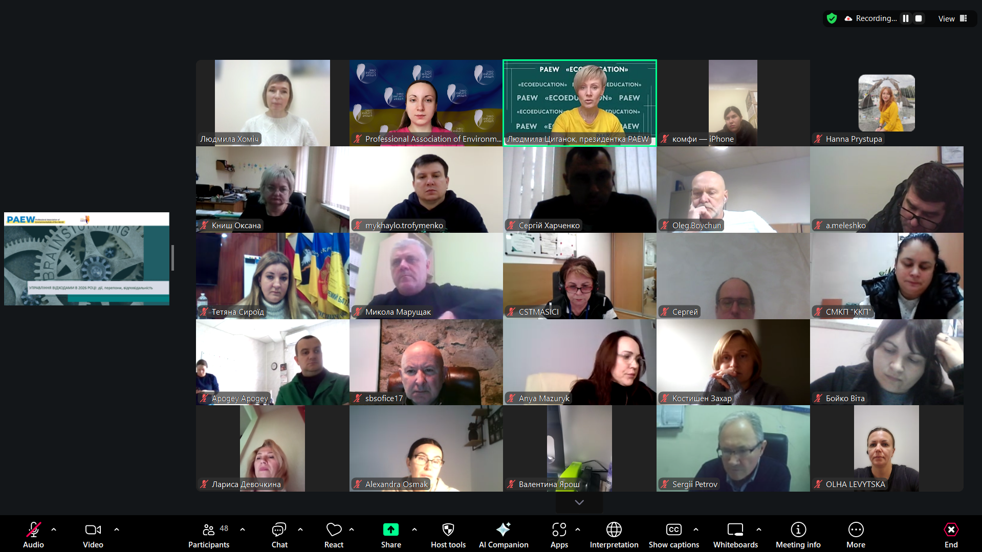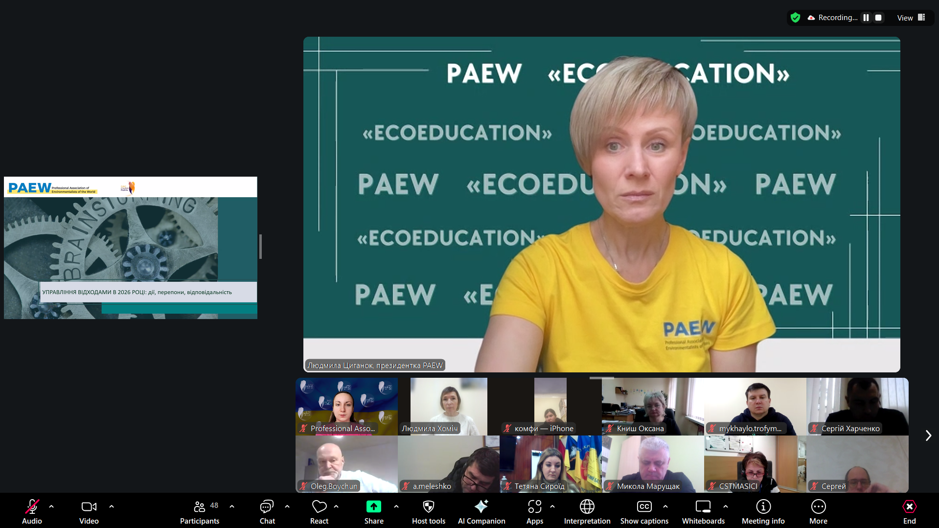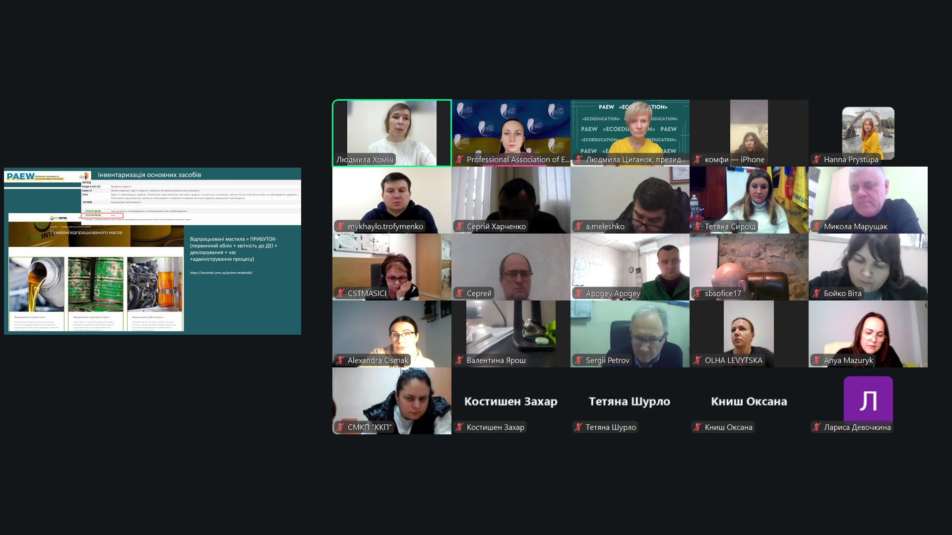 З учасниками працювала ЛЮДМИЛА ХОМІЧ, еколог, аудитор, віцепрезидентка Асоціації професіоналів довкілля PAEW, яка зауважила: