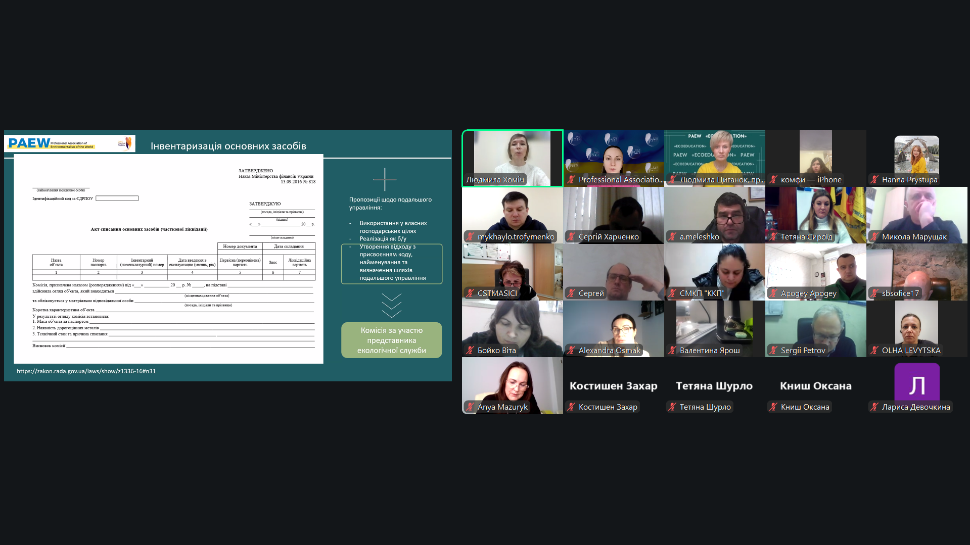 І на завершення навчання АЛЬОНА ШУТЕНКО, еколог, голова комітету з управління відходами Асоціації професіоналів довкілля PAEW підвела підсумки для учасників: