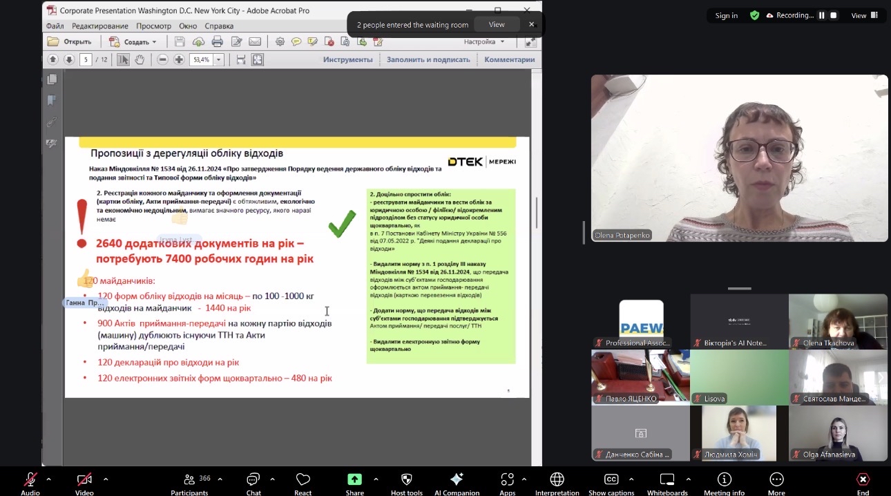 Під час відкритого засідання Комітету з управління відходами Асоціації професіоналів довкілля PAEW за участі понад 380 фахівців в прямому ефірі 13 лютого фокус розмови був не на «черговому обговоренні реформи», а на тому, як система поводження з відходами працює в умовах війни — коли країна одночасно воює, відновлюється, має дефіцит ресурсів і не має права на регуляторні помилки.
